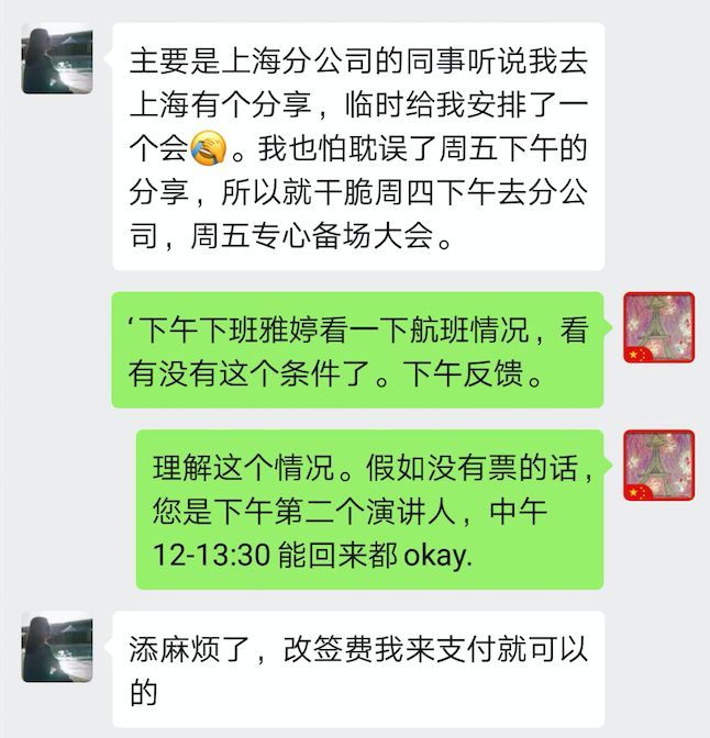 贵为演讲人,因为提出改动航班,她除了道歉,还主动表示要承担改票费。从筹备到开会,我们的沟通持续3个多月,从未听到她一句埋冤与指责。和她交往时的心情很舒服,很乐意把我们该做的去做得更好。