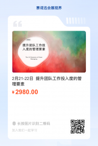 特别福利:在这门课后3个月中,参加者可得到和马老师的两次1对1教练对话(每次1小时,巩固管理者的课后行动实施)。