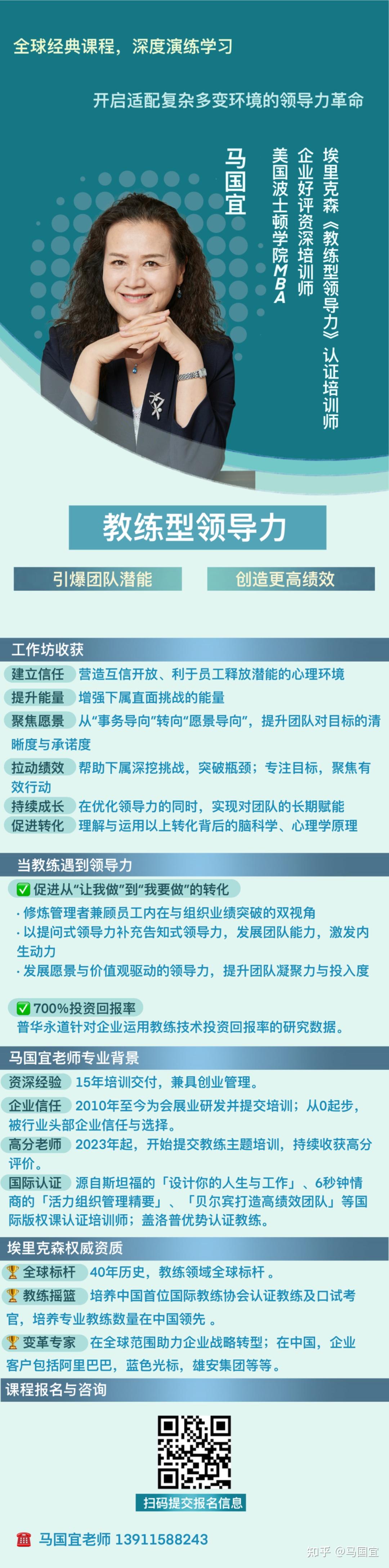 现在不是“要不要变”,而是“变多快”的问题。当你学会用教练技术点燃团队心智,你会发现自己不再“孤军奋战”,而是拥有一支驾驭变化、有想法有执行力的敏捷战队。这是未来10年管理者的核心竞争力。