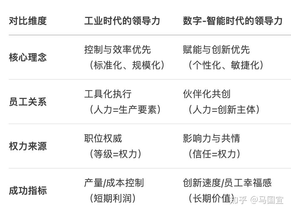 用一个表格来对比工业时代的领导力与数字-智能时代的领导力风格: