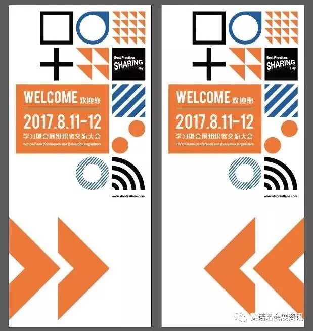 王芳:2017交流日选了橘和蓝的主色调。这样高纯度对比色的安排无疑传递了积极、鲜明、确定的信号。两个颜色既可以组合使用,还可以分裂为两个相关的色彩体系,便于在沟通中产生变化,不呆板。橙色在会前使用更多,用来表达“欢迎、多元、轻松、开放“;而蓝色更凝聚力量。