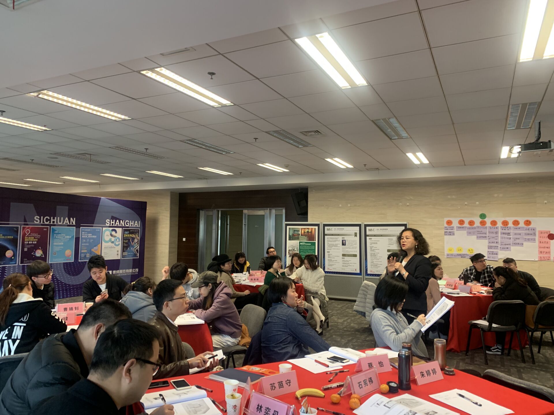 轻松、互动是本次培训的主基调,马老师安排成员通过小组讨论的方式得出成果,每组各派代表就几个重要议题进行了成果表述,极大调动学员积极性,引发全场的讨论热潮,台上台下积极互动。学员们在马老师的悉心指导下,收获颇丰。